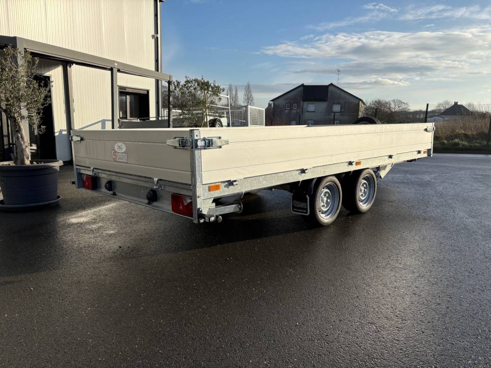 Les plateaux professionnels Saris ( constructeur depuis 1959) sont construits avec un châssis tubulaire soudé galvanisé à chaud pour augmenter la stabilité routière lors de forte charge et aussi la robustesse.